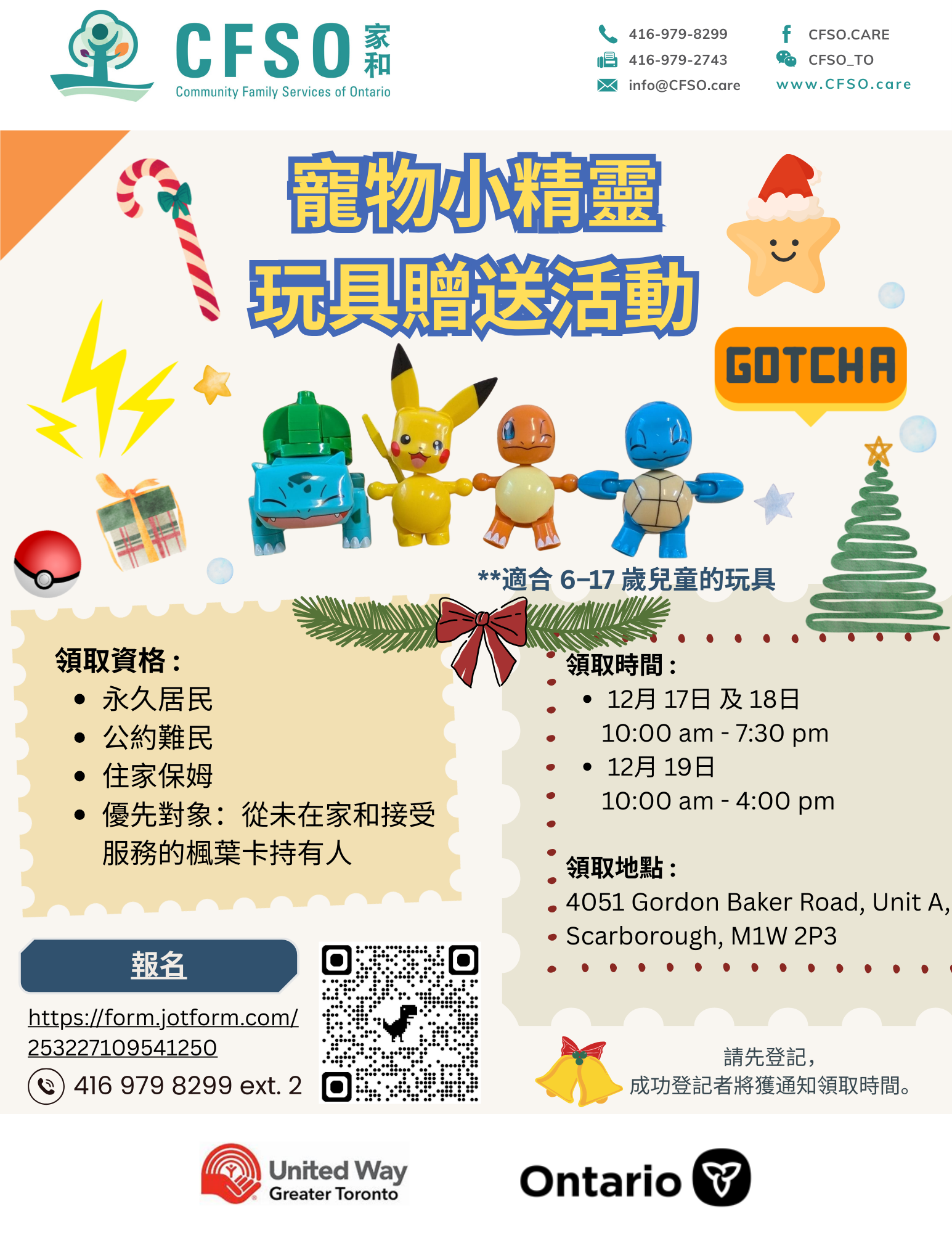 19 12 月 @ 10:00 上午 - 4:00 下午 寵物小精靈模型玩具贈送 CFSO Main Office 4051 Gordon Baker Rd, Unit A, Scarborough, Ontario, Canada Free